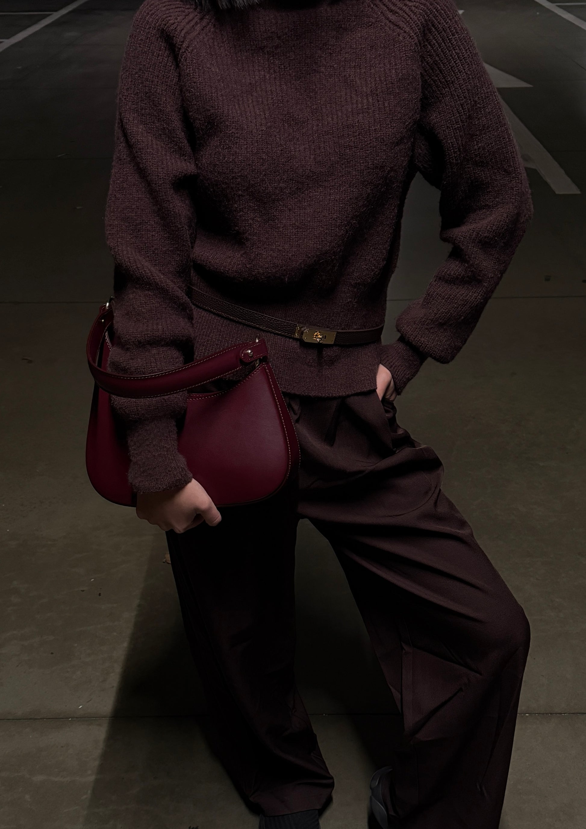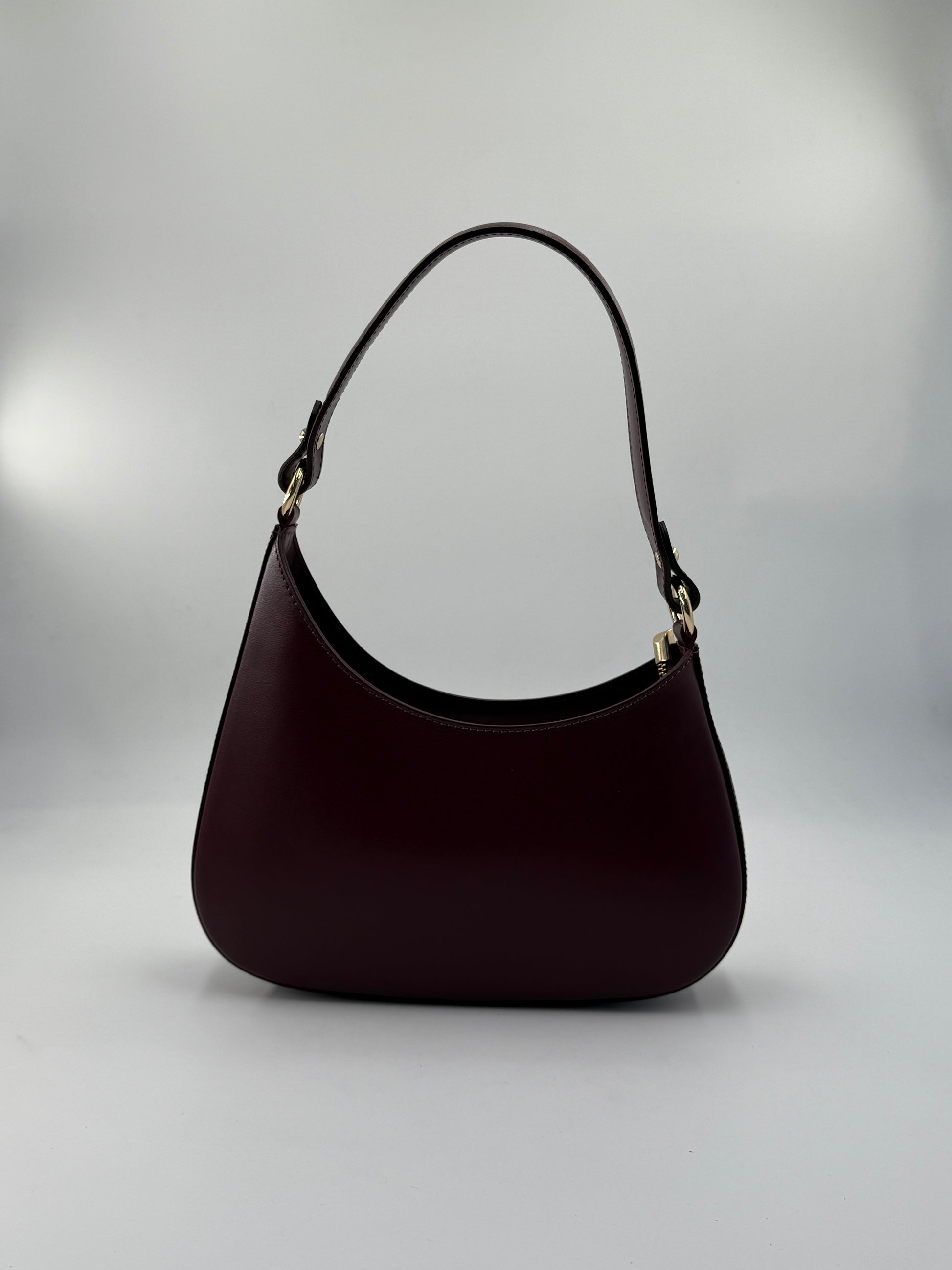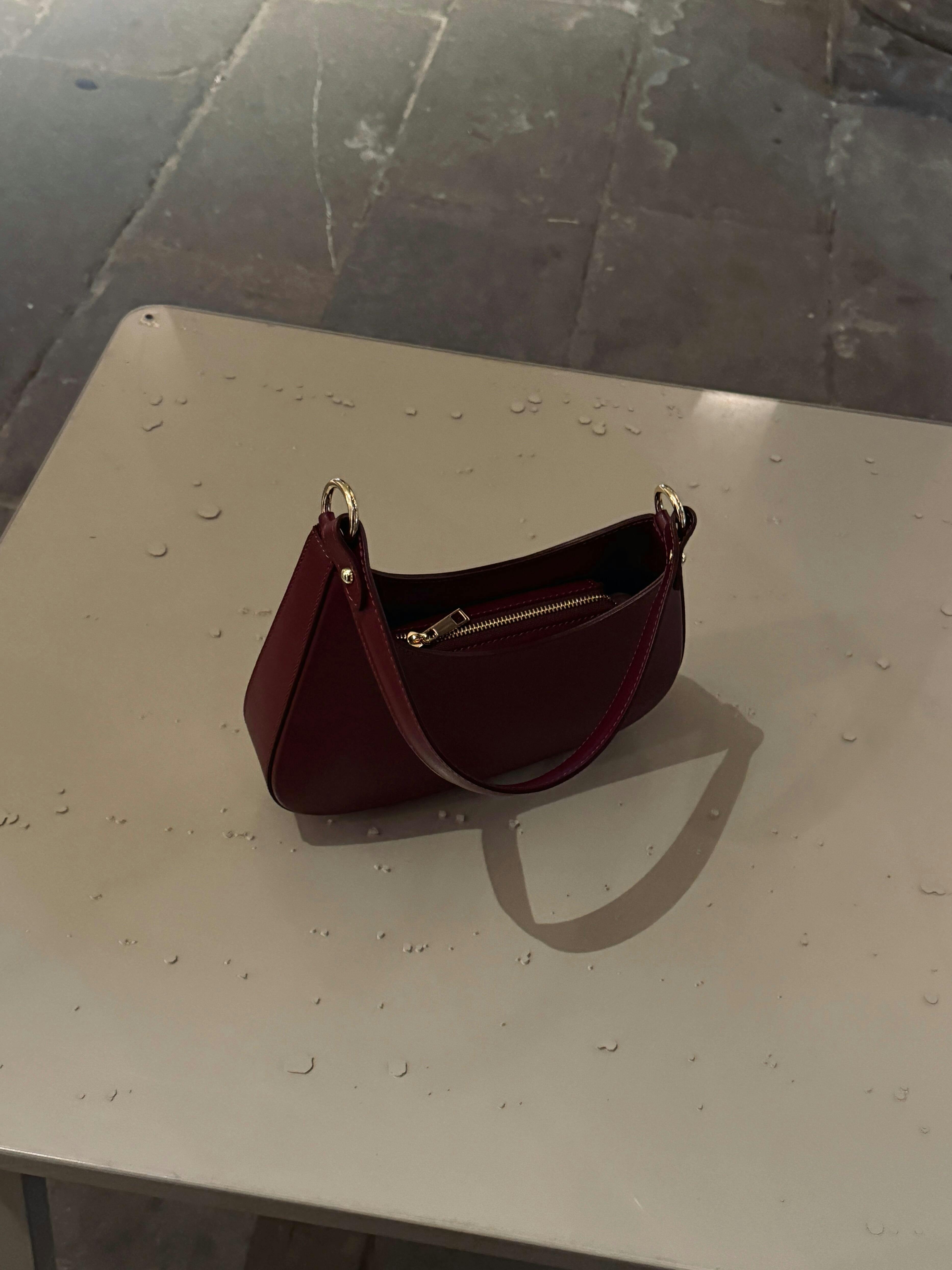 Raffinement profond, courbes harmonieuses. À l'image du précieux grenat rouge foncé, ce sac captive le regard par son cuir riche et brillant et sa silhouette minimaliste d'une élégance rare. Bien plus qu'un simple accessoire, c'est un investissement dans un luxe discret et intemporel.