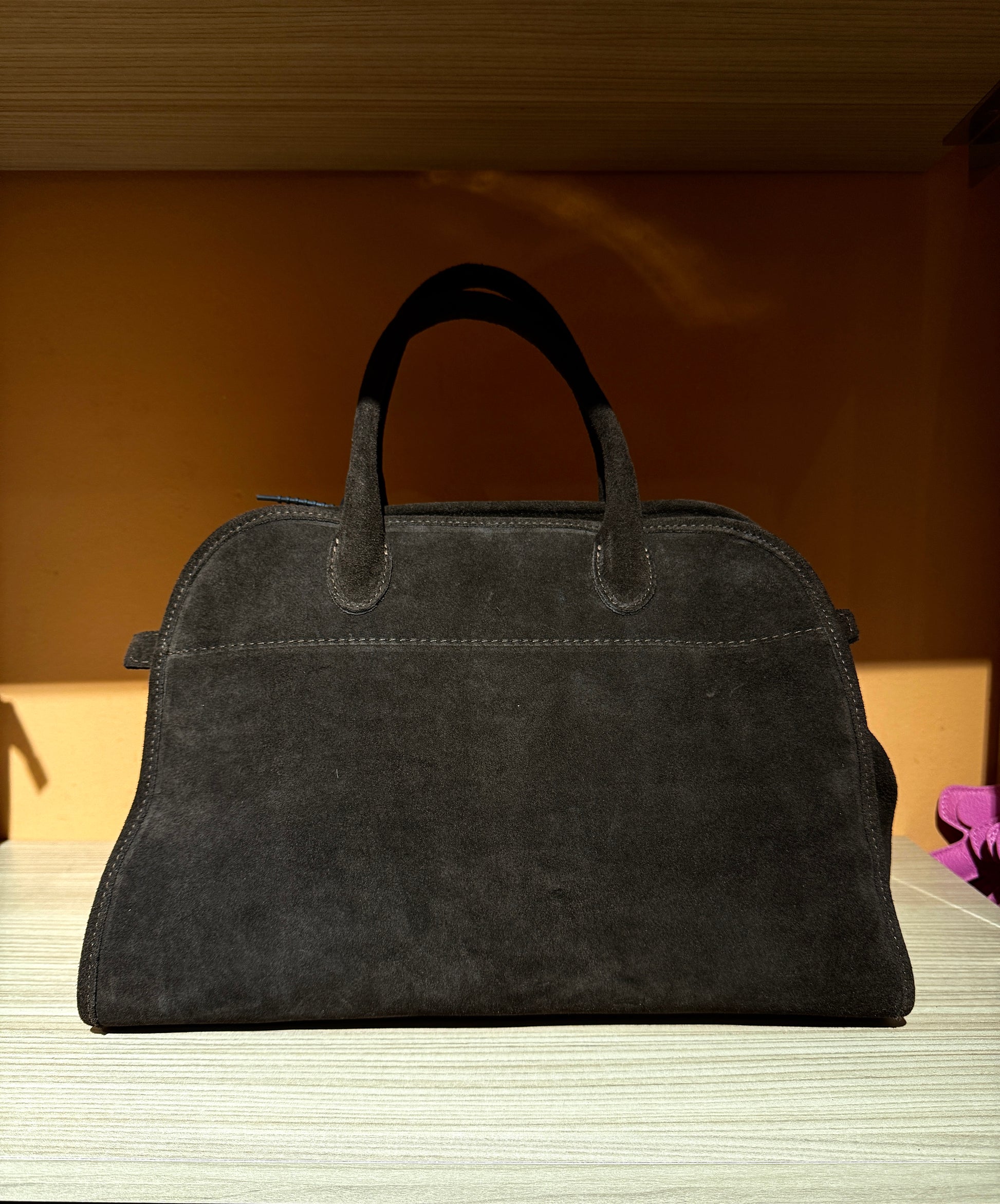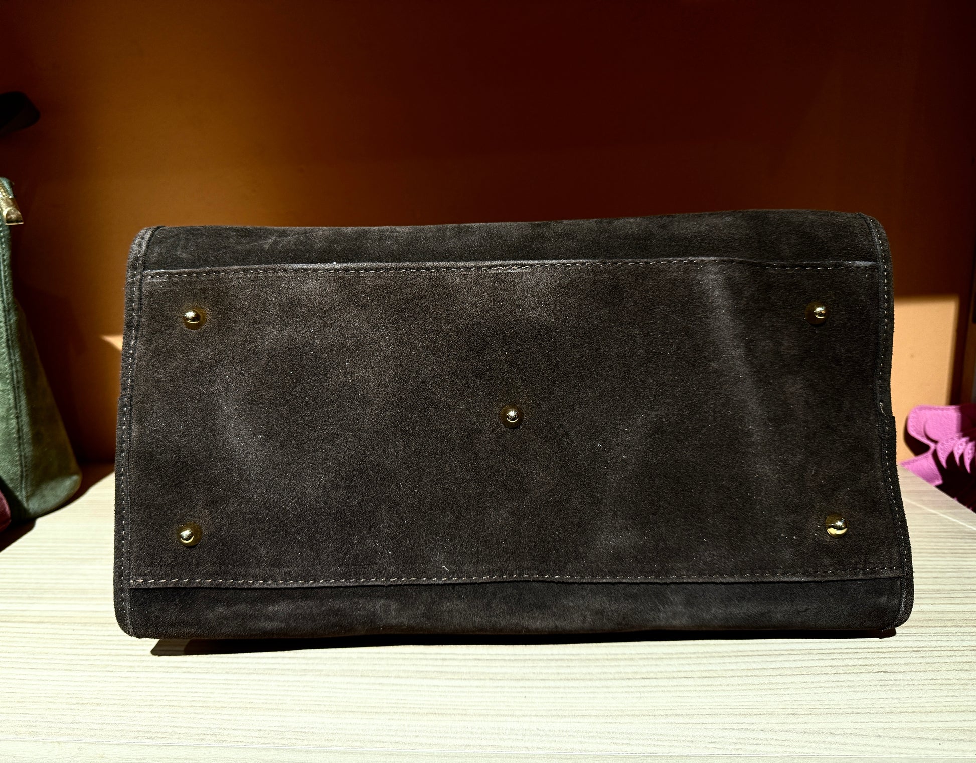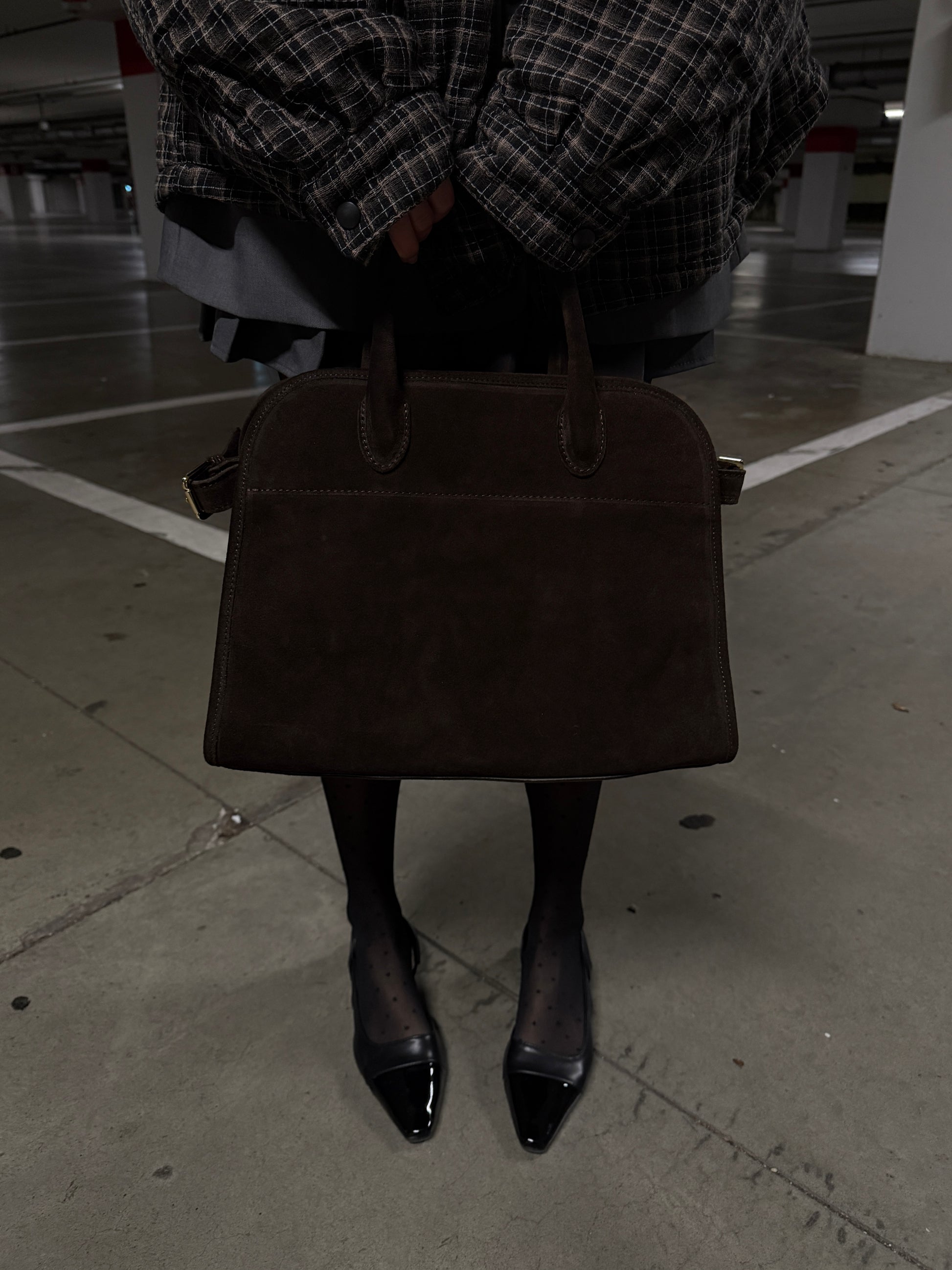 Eleganza radicata, potenza raffinata. Come la pietra vulcanica protettiva, questa borsa cattura l'attenzione con la sua texture ricca e vellutata e la sua raffinatezza senza tempo. È più di un accessorio: è una dichiarazione di tranquilla sicurezza.