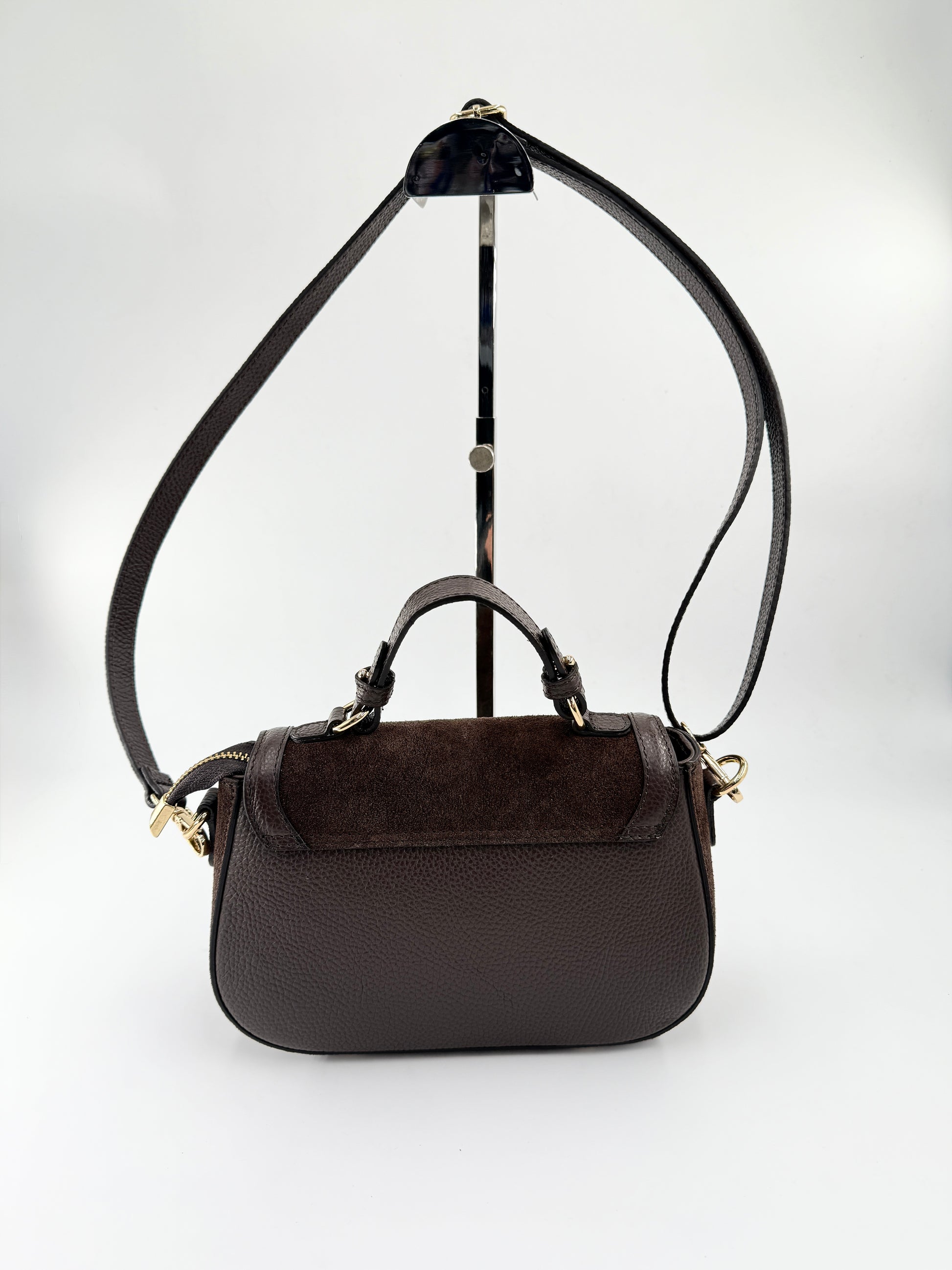 Texture meets structure. This bag is the ideal companion for those moments when you need understated elegance. The juxtaposition of the rich, smooth leather body and the plush suede flap creates a beautiful depth. Its structured shape ensures it looks chic whether carried by the top handle or worn across the body, effortlessly blending classic style with a tactile finish.