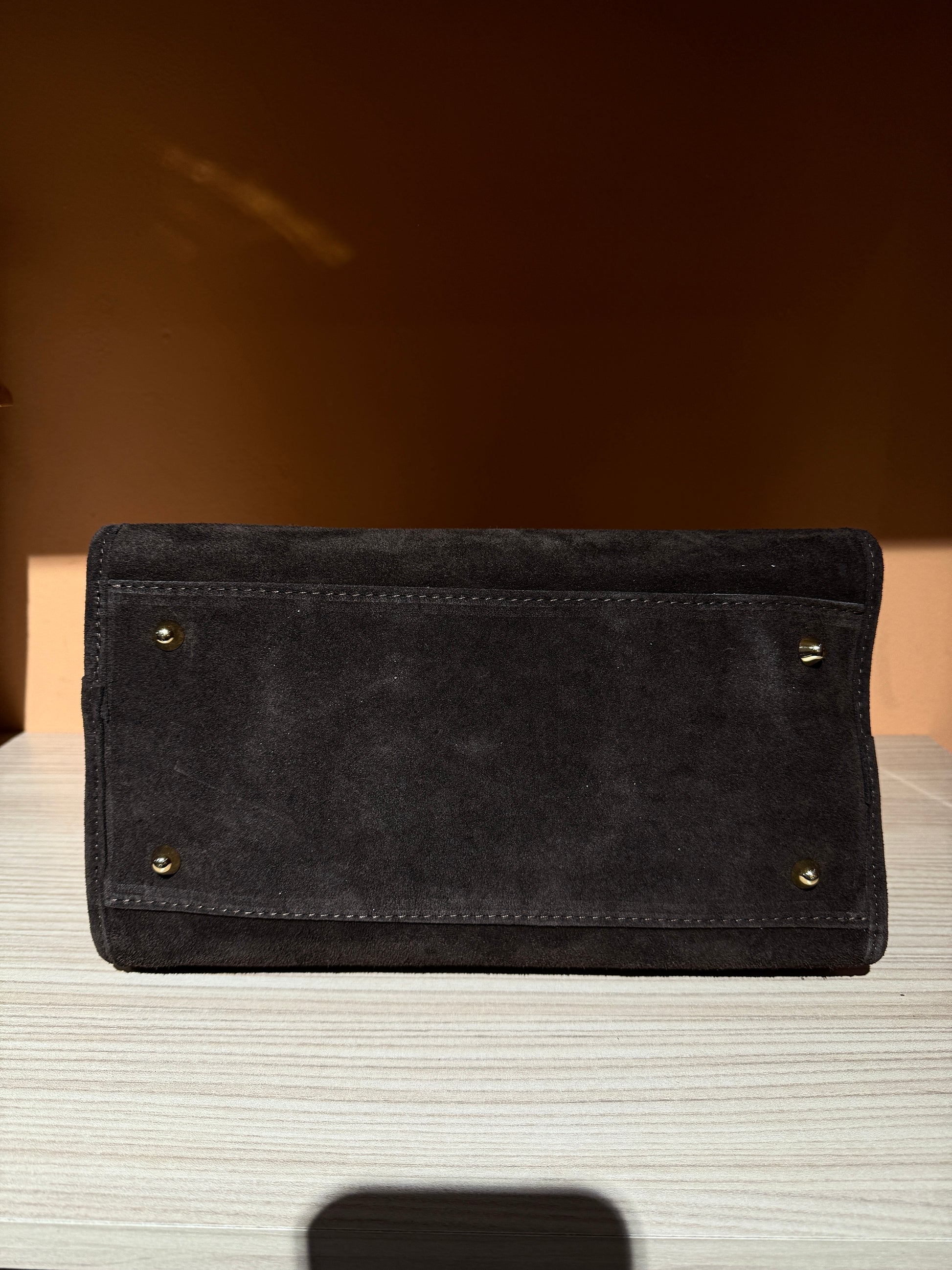 Clean gently with a suede brush. Avoid contact with water and oils. Store in a dust bag when not in use and avoid prolonged sun exposure to preserve the soft suede texture and rich color.